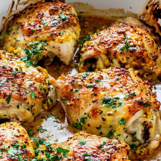 Oven roasted chicken thigh, brown rice, brazed cabbage