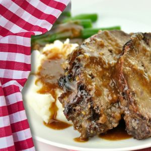 Angus beef, w/onion & Mushroom gravy, cauliflower mash & sauteed green beans